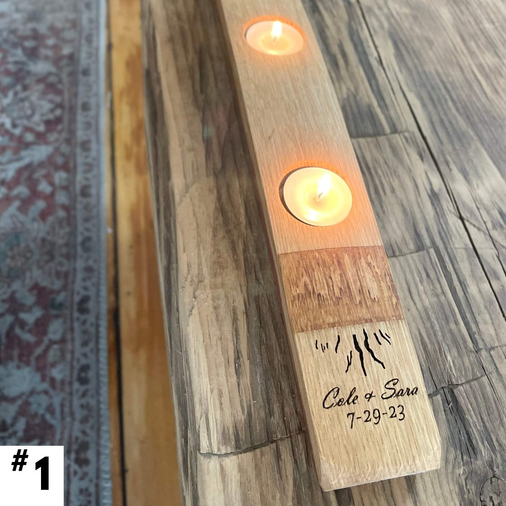 Looking for a one-of-a-kind gift that truly stands out? The Sylvia Stave is a custom-engraved tealight holder crafted from authentic wine barrel staves, making it a thoughtful choice for anyone who appreciates distinctive, meaningful decor. Perfect for weddings, milestone anniversaries, and heartfelt celebrations, this beautiful piece brings a blend of rustic charm and personalization into any home. With room for three tealights or mini bud vases, it’s a versatile gift that fits effortlessly on mantels, dining tables, or shelves—ideal for those who love a warm, inviting ambiance.