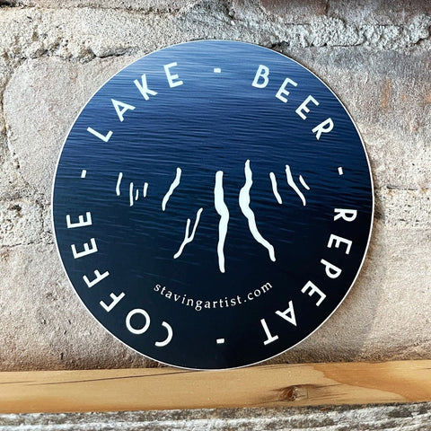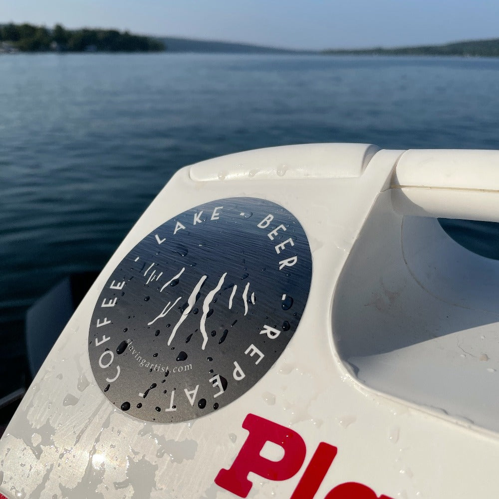 Embrace the quintessential Finger Lakes routine with our Coffee, Lake, Beer, Repeat Sticker. This durable vinyl sticker encapsulates the perfect day: starting with a fresh cup of coffee, enjoying the serene beauty of the lake, and unwinding with a cold beer. It's an ideal accessory for those who cherish the simple pleasures of life in the Finger Lakes region.